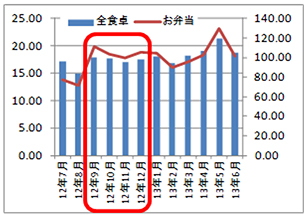 食MAP®鶏の唐揚げTI値 左軸:全食卓 右軸:お弁当![]() |