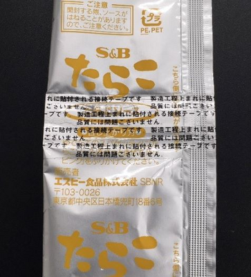 製造時にソースの袋同士をつなげる為のテープです。品質に問題はありませんが、ご心配な場合はお客様相談センターへご連絡をお願いします。