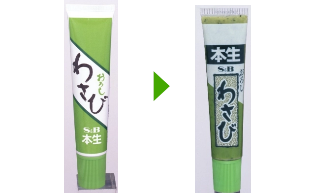 本わさびの新鮮さやみずみずしさを表現した味わいに改良し、商品名を「おろしわさび」から「生わさび」へ変更