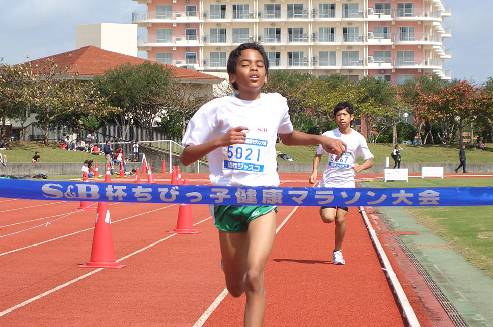 5年男子は宮城くんと新垣くんが相譲らずのマッチレースとなり、ラストは宮城くんが突き放し制しましたが、二人とも全国トップレベルの10分34秒、36秒の好タイムでした。来年もどんな走りを見せてくれるか注目です。6年男子は浦崎くんが独走で10分42秒の好タイムをマーク。同女子も比屋根さんが11分09秒の好タイムを独走でマークしました。