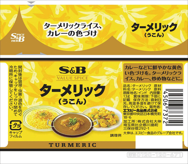 リーズナブルでお得感のあるスパイスシリーズです。ターメリックライス、カレー、炒め物などに。