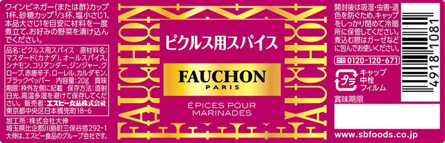 ピクルス用ミックススパイスです。ワインビネガー(または酢)カップ1杯、砂糖カップ1/3杯、塩小さじ1、本品大さじ1を目安に材料を一度煮立て、お好みの野菜を漬け込んでください。