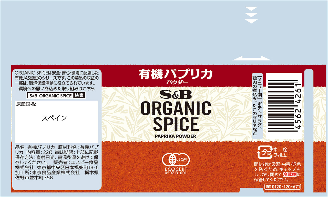 安全・安心・環境に配慮し有機栽培原料を使用した有機JAS認証のスパイス・ハーブシリーズです。甘さのある特有の風味と鮮やかな赤い彩り。ポテトサラダ、鶏肉の煮込み、たこのマリネなどに。