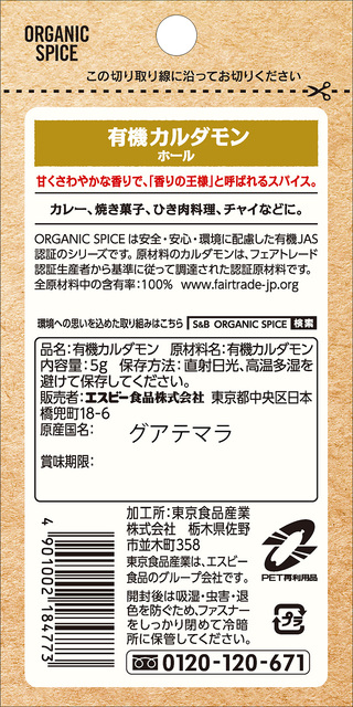 有機JAS認証のスパイス・ハーブシリーズです。基準を守って調達されたフェアトレード認証原材料を使用しています。香りの王様と呼ばれる、さわやかで気品のある香り。保存に便利なファスナー付き。