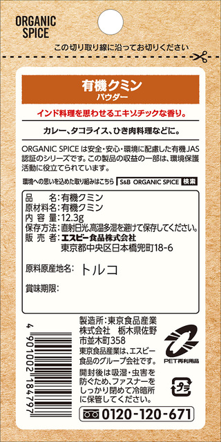 安全・安心・環境に配慮し有機栽培原料を使用した有機JAS認証のスパイス・ハーブシリーズです。インド料理を思わせるエキゾチックな香り。保存に便利なファスナー付き。
