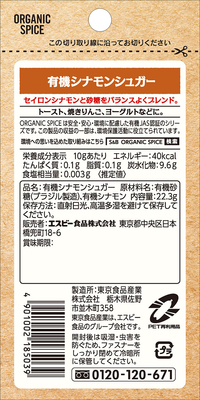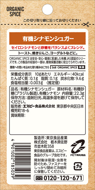 有機砂糖(ブラジル製造)、有機シナモン