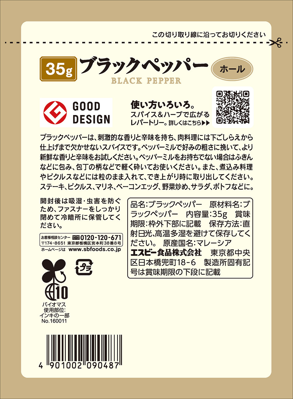 刺激的な香りと辛味を持ち、肉料理には下ごしらえから仕上げまで欠かせないスパイスです。ペッパーミルで好みの粗さに挽いたり、ホールのまま煮込み料理にご利用ください。保存に便利なファスナー付き袋タイプ。