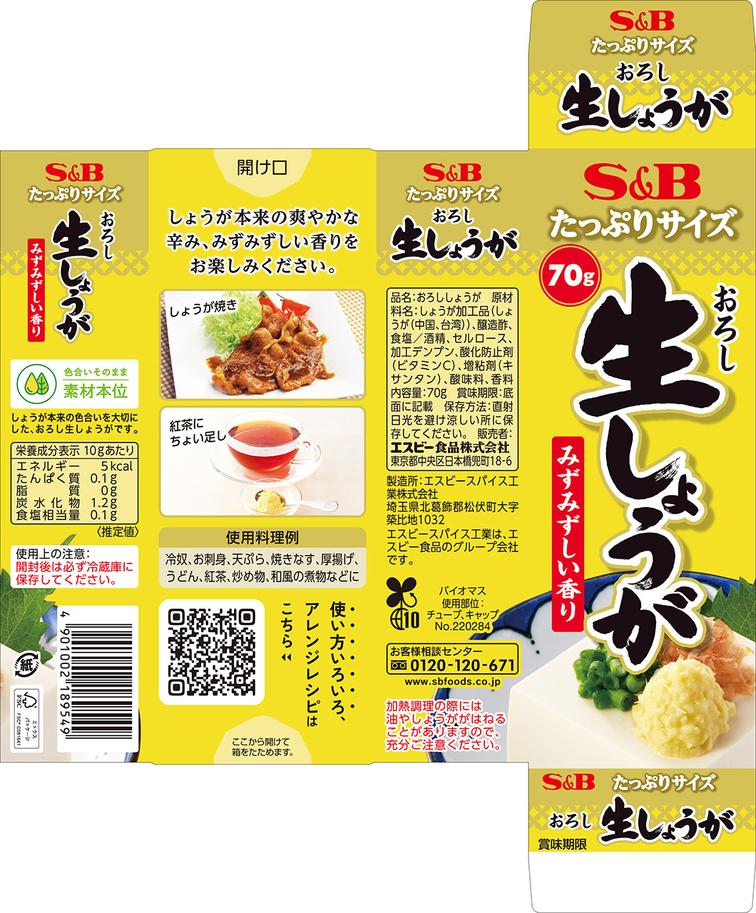 たっぷり使えるチューブタイプのおろし生しょうがです。しょうがの自然な風味、爽やかな辛み、瑞々しい香りをお楽しみください。