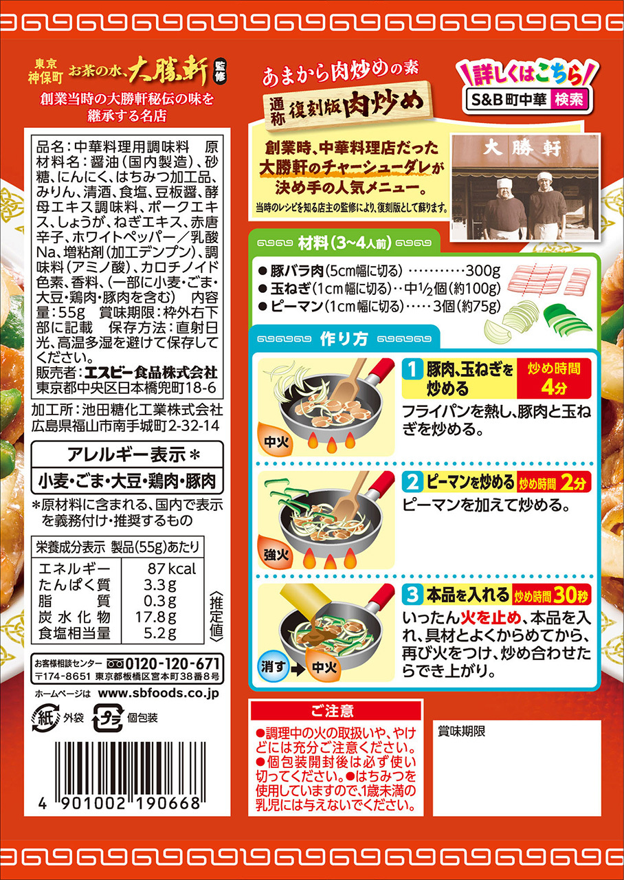 創業当時、中華料理店だった大勝軒の人気メニュー「肉炒め」のレシピをお茶の水、大勝軒の店主により復刻。長年受け継がれる秘伝のチャーシューダレが味の決め手。