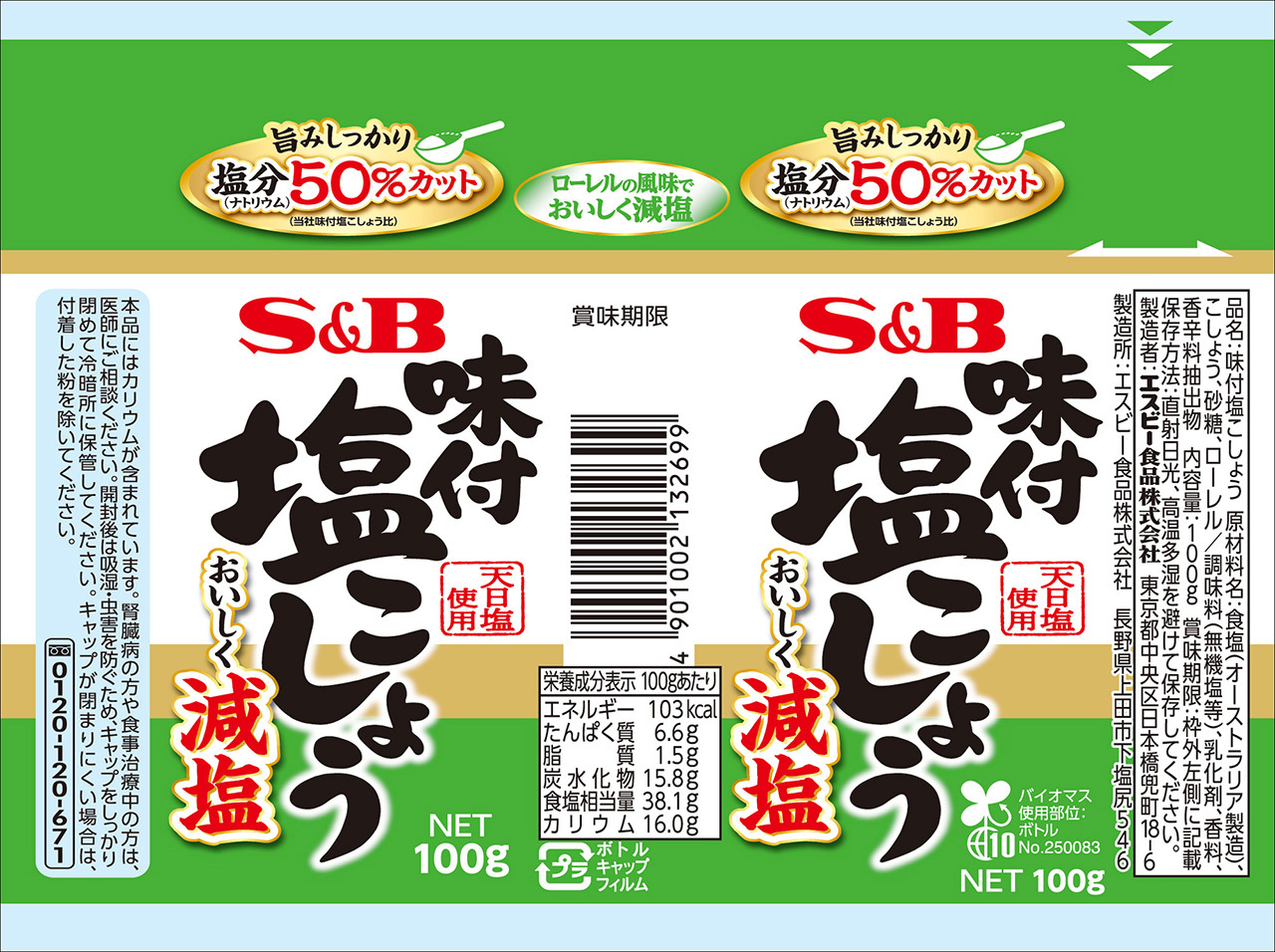 塩分(ナトリウム)の1/2をカリウムに置き換えて、塩分(ナトリウム)を50%カット(当社味付塩こしょう比)。ローレルの風味が美味しさを引き立てる、料理の下ごしらえから仕上げまでこなす万能調味料です。