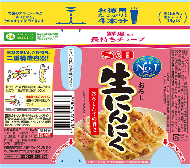 空気が中身に触れにくい「鮮度長持ちチューブ」を採用した、お徳用タイプのにんにくチューブ。にんにくの自然な風味、豊かな旨み、力強い香りをお楽しみください。