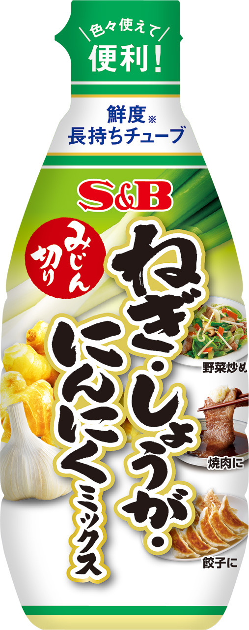 みじん切りのしょうが・にんにくに、ねぎを加えた香味野菜ミックス。1本で「炒め」「下味」「薬味」などの幅広い調理シーンに利用できます。空気が中身に触れにくい「鮮度長持ちチューブ」を採用。