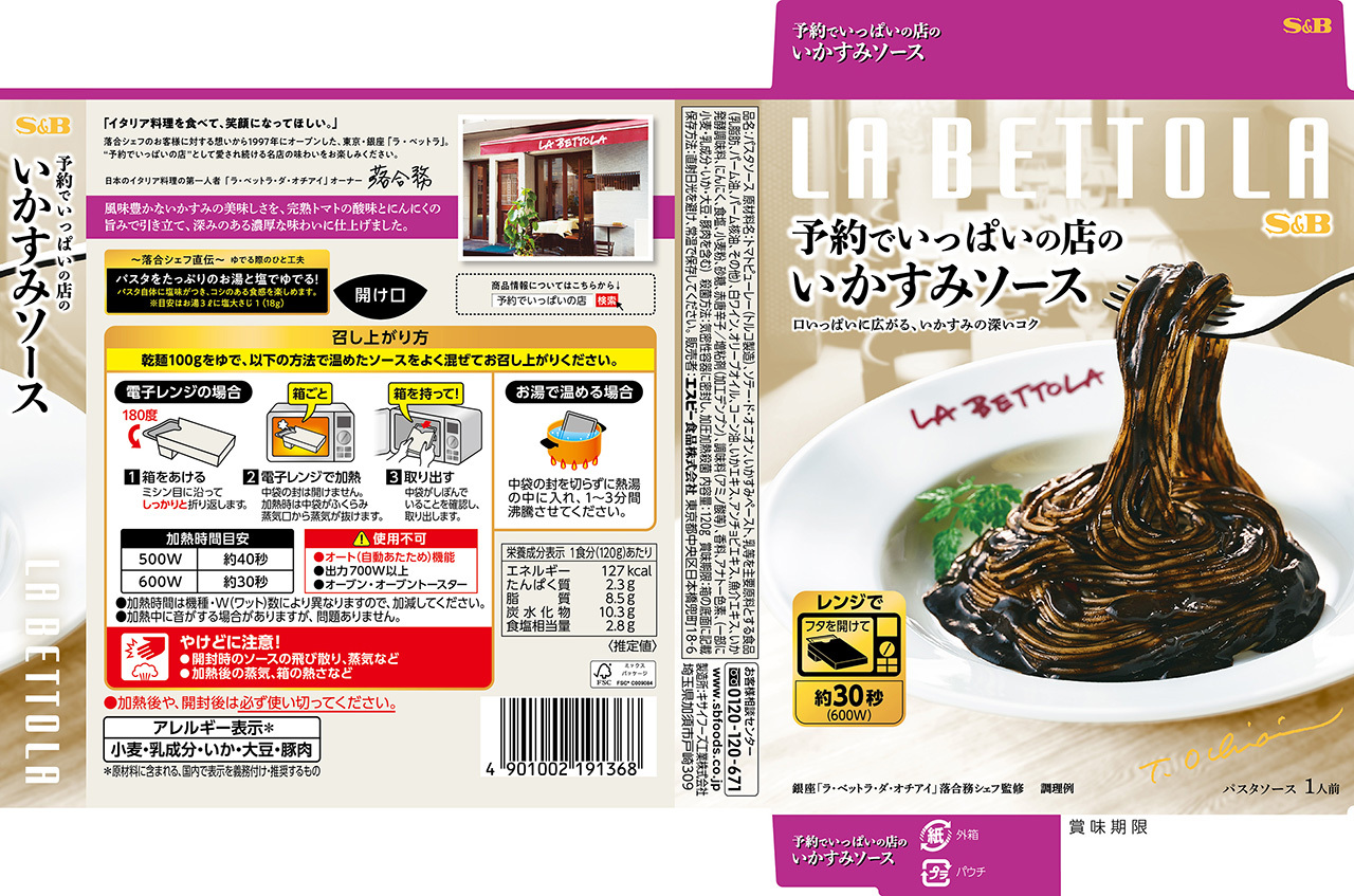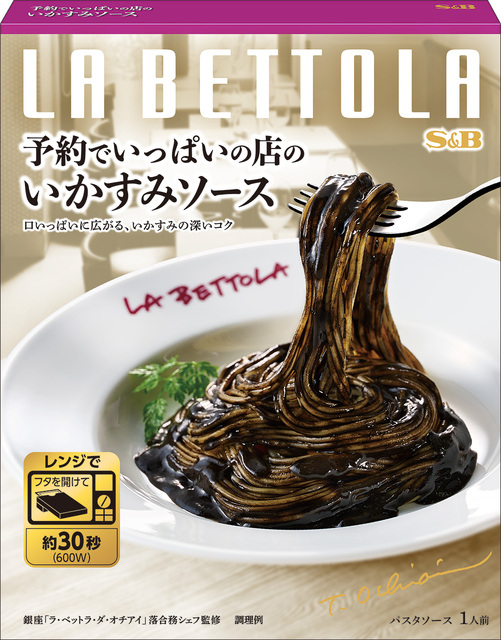「予約でいっぱいの店」として有名な東京・銀座「ラ・ベットラ」落合務シェフ監修。いかすみの旨みを完熟トマト、オリーブオイルで引き立てることでいかの風味を引き立たせた味わい。