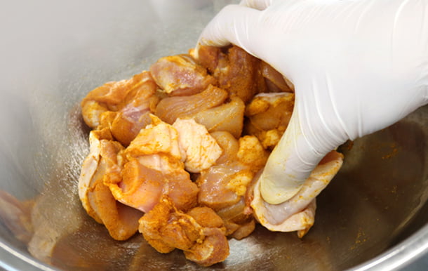 鶏肉への下味にスパイス&ハーブをまぶす