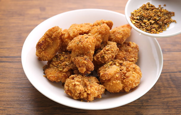仕上げにザクザク食感のスパイスを振りかければ、オリジナリティ溢れるインパクト抜群の唐揚げができる!など、