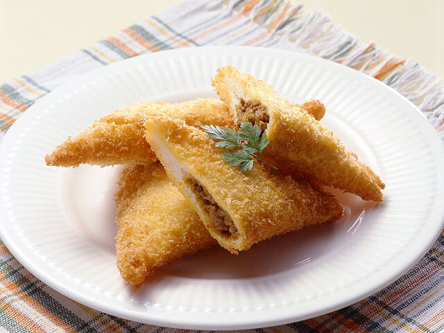 - 【4】【3】を【1】のパンにはさみ、のり状に水で溶いた薄力粉でまわりを閉じます。