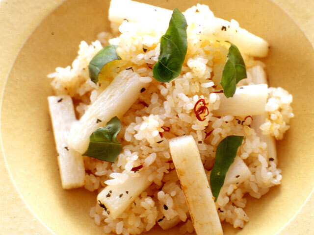 - 【4】味をみて塩、ブラックペッパーを加減して振り、【2】を加えて混ぜ、あればフレッシュのバジルの葉を刻んで添えます。