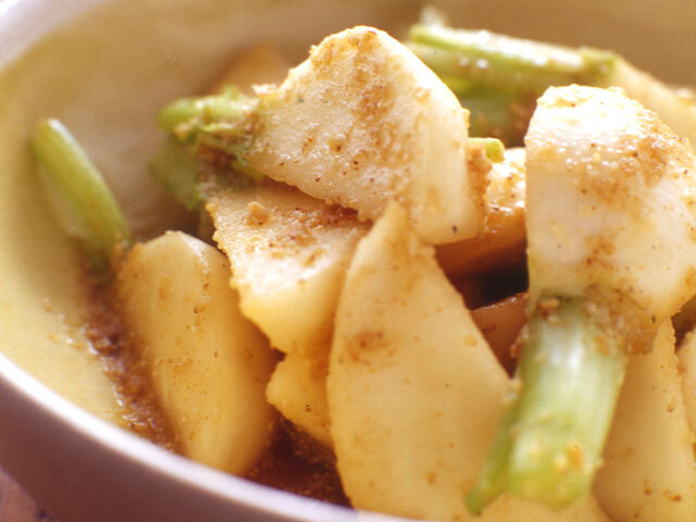 - 【2】【1】に、すりごま、醤油、砂糖、唐辛子、だし汁を合わせて混ぜます。