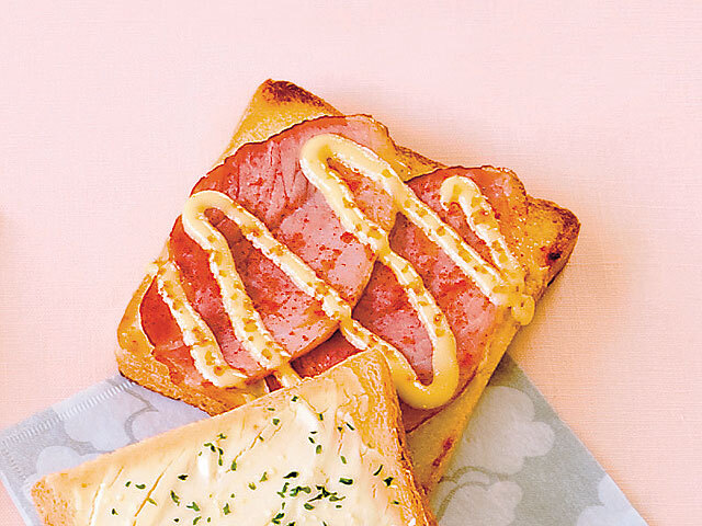 - 【1】食パンにマヨネーズを塗り、ハムをのせてその上にさらにマヨネーズをかけます。