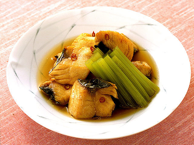 - 【2】ふきはゆでて皮をむき、5cm長さに切ります。だし汁と調味料を鍋に合わせて煮立たせ、ふきを加えて味がしみ込むまで煮ます。