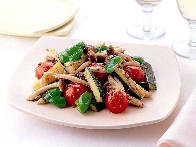 - 【1】ピーマンはひと口大に切ります。ズッキーニは長さを4等分してから、それぞれ縦6等分に切ります。しめじはほぐします。