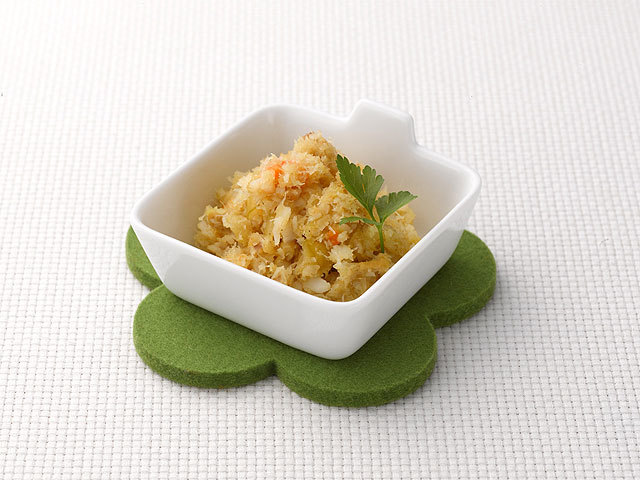 - 【2】フライパンに【1】とカレーを入れて数本の菜箸でよく混ぜながら、そぼろ状になるまで炒めます。器に盛ってお好みでイタリアンパセリを飾ります。
