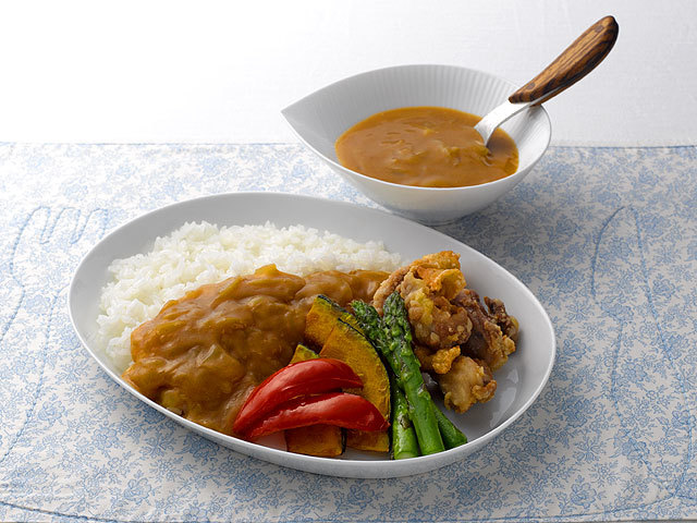 - 【6】器に白飯と【5】を盛り、【4】のカレーをかけながらいただきます。