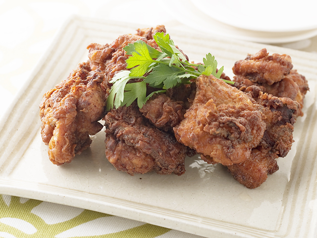 - 【3】別のボウルに【B】を合わせ、【2】を軽く水けをきってまぶし、170度の油できつね色になるまで揚げます。
