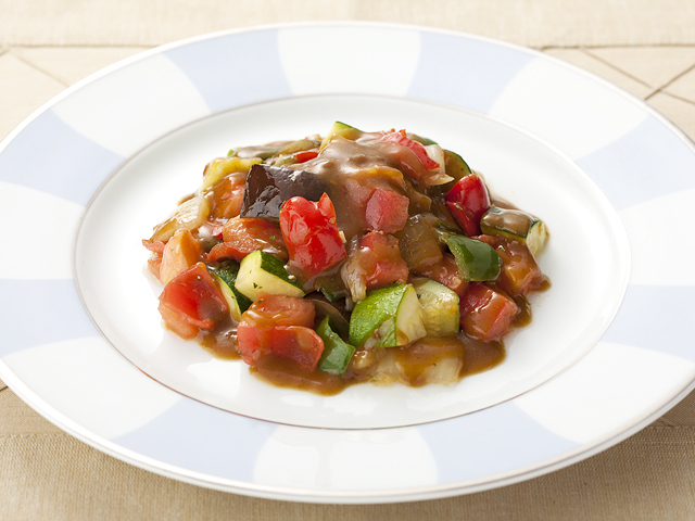 - 【1】全ての野菜は角切りにします。フライパンにオリーブオイルを入れ、トマトとにんにく以外の野菜をソテーします。マジックソルト、にんにくのみじん切り、トマトの角切り、松の実を加えます。