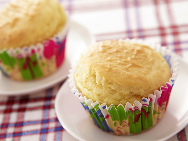 - 【3】カップに【2】を均等に流し入れて、オーブンで15-16分焼きます(竹串でさして生地がついてこなければ焼き上がり)。