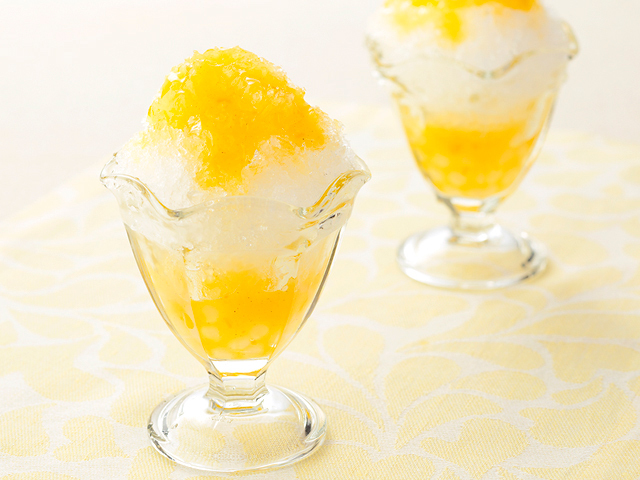 - 【3】器に氷を入れ、上に【2】をかけ、ゆでたタピオカを添えます。