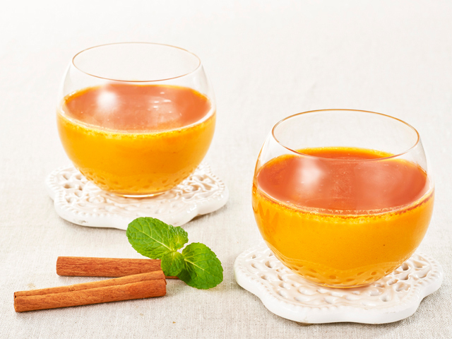 - 【4】火を止めて60℃くらいまで冷まし、【2】に加えて混ぜ合わせます。シナモンを加えて混ぜ、容器に注ぎ、冷蔵庫で冷やし固めます。