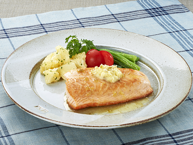 - 【1】バター25gを室温にもどしてやわらかくし、きざみわさびを合わせて混ぜ、きざみわさびバターをつくります。