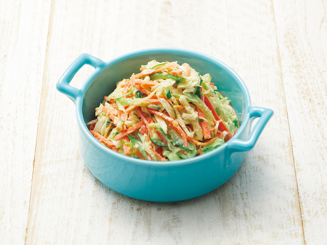 - 【1】キャベツ、きゅうり、にんじんはせん切りにして塩をふり、しんなりしたら水けを絞ります。