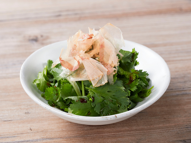 和風の味付けにも意外とよく合うパクチーをシンプルなひと皿で。