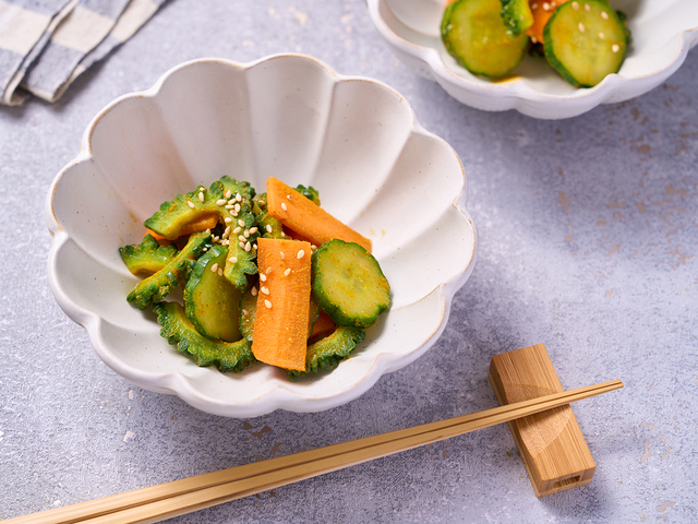 - 【1】ポリ袋にきゅうり、ゴーヤ、にんじん、塩を加えて、揉み込みしんなりしたらそのまま15分くらい漬け込みます。
