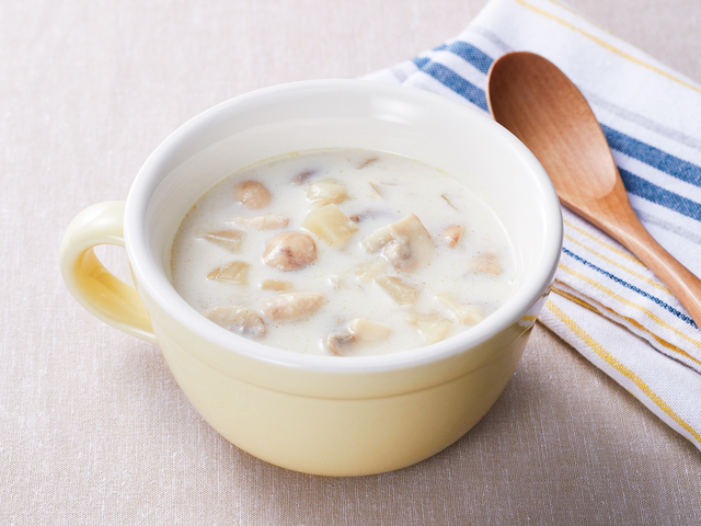 - 【3】コンソメ、水、おろししょうがを入れてフタをし、野菜がやわらかくなるまで弱火で煮たら、牛乳を加えてひと煮立ちさせます。