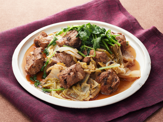 豚肉と白菜を、コクのある旨みを持つ大豆の発酵食品である豆豉風味で蒸しました。フライパン一つでボリュームある蒸し煮が簡単に出来上がります。