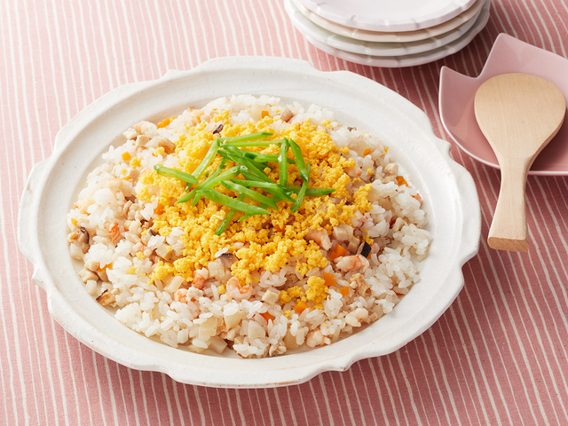 - 【3】器に盛り、炒り卵、絹さやをのせます。