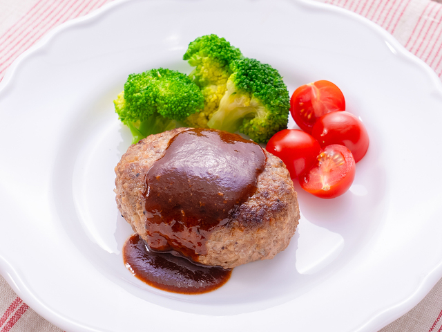 - 【6】残った肉汁に【B】を加えて混ぜ、中火で熱し、ふつふつとしたら【5】にかけます。お好みでゆでたブロッコリー、半分に切ったミニトマトを添えます。