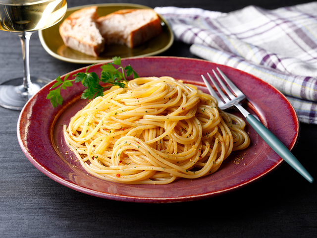 - 【1】スパゲッティはたっぷりの湯に塩を入れずに表示の時間ゆでます。