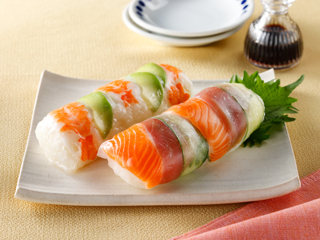 - ・すし飯は棒状に軽く整えてから、ライスペーパーにのせると巻きやすいです。