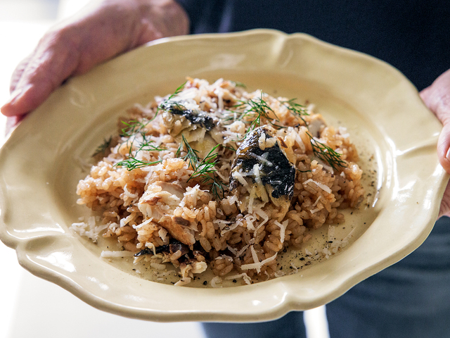 - 【6】炊き上がったらさばの骨を取り除き、粗くほぐしながら混ぜます。