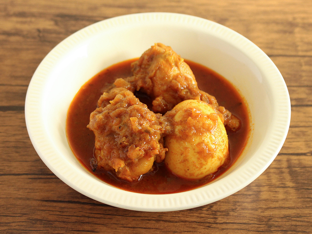 エチオピアのスパイシーなチキンシチュー、ドロワット。ドロは鶏肉、ワットは煮込み料理の意味です。本来はたくさんの種類のスパイスやハーブを使って仕上げますが、ご家庭でも楽しめるようにカレー粉とパプリカパウダーで簡単にアレンジし、食べやすいようカレー風に仕上げました。