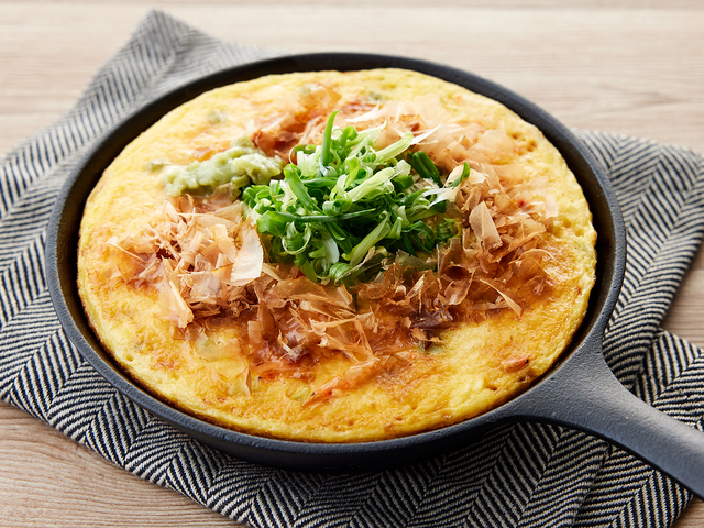 - 【2】鉄板やスキレット等にごま油を熱し、【1】を入れ、焼き上げます。