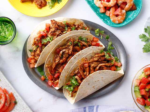 タコスはひき肉だけじゃない!シーズニングで味付けした鶏肉をトルティーヤで包んでいただきます。味わいの決め手はブラックペッパー。ホールタイプをミルで挽いて、挽きたての香りをお楽しみください。