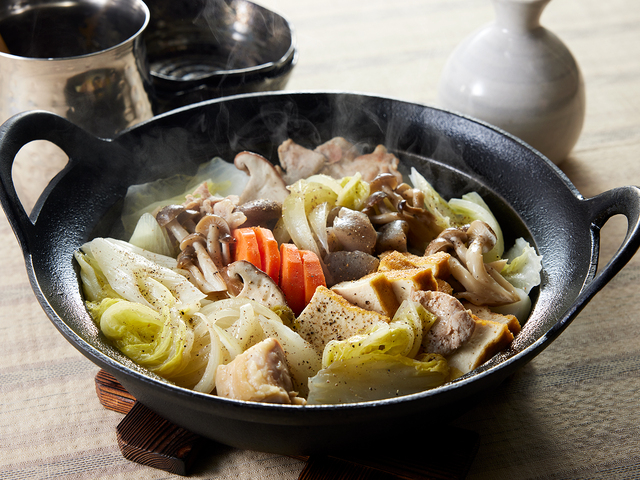 美酒鍋とは広島県の郷土料理。豚肉や鶏肉を炒めて、日本酒を加えて煮込むシンプルな味わいです。最後にブラックペッパーを振りかけるのもおすすめです。