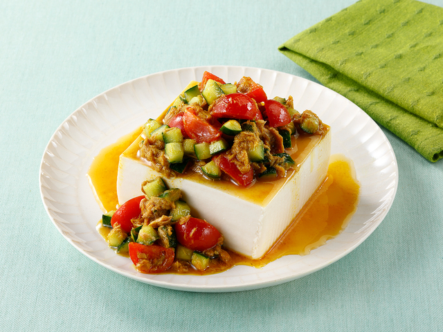 - 【3】器に水けをきった豆腐をのせ、【2】をかけます。