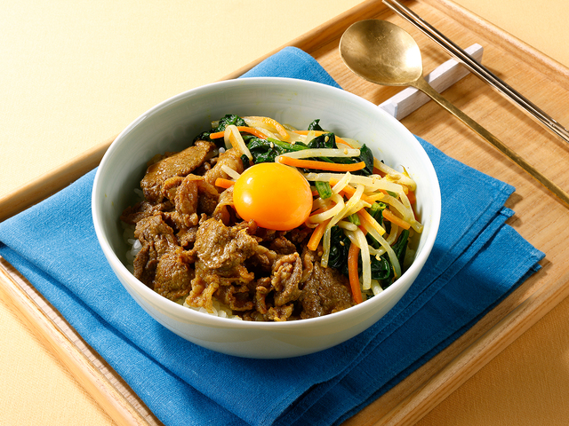 - 【5】器に白飯、【2】、【4】を盛り、卵黄をトッピングします。