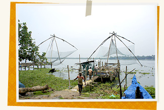 チャイニーズフィッシングネットとは魚をとるための仕掛けで、このネットを海に沈めて引きあげ、そこにかかった魚をとる・・・という、古くに中国から伝わってきた漁法だそうです。独特の大掛かりな仕掛けが並ぶ様子は、なぜか懐かしく、ノスタルジックな雰囲気。
